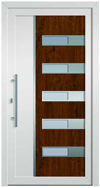 Unsere verwendeten Werkstoffe und Bauteile sind unglaublich wandlungsfähig. Einerseits lässt sich die historische Formensprache authentisch abbilden. Andererseits sind verschiedene Oberflächen und Verarbeitungsdetails unserer Türen wie geschaffen für designorientierte Architektur. Durch acrylcolor-Oberflächen mit gebürstetem Finish und trendigen Farben kann man die moderne Geometrie der Haustüren zusätzlich betonen.